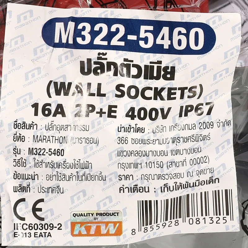 MARATHON เพาเวอร์ปลั๊กตัวเมีย ติดผนัง (ชนิดกันน้ำ) 16 แอมป์