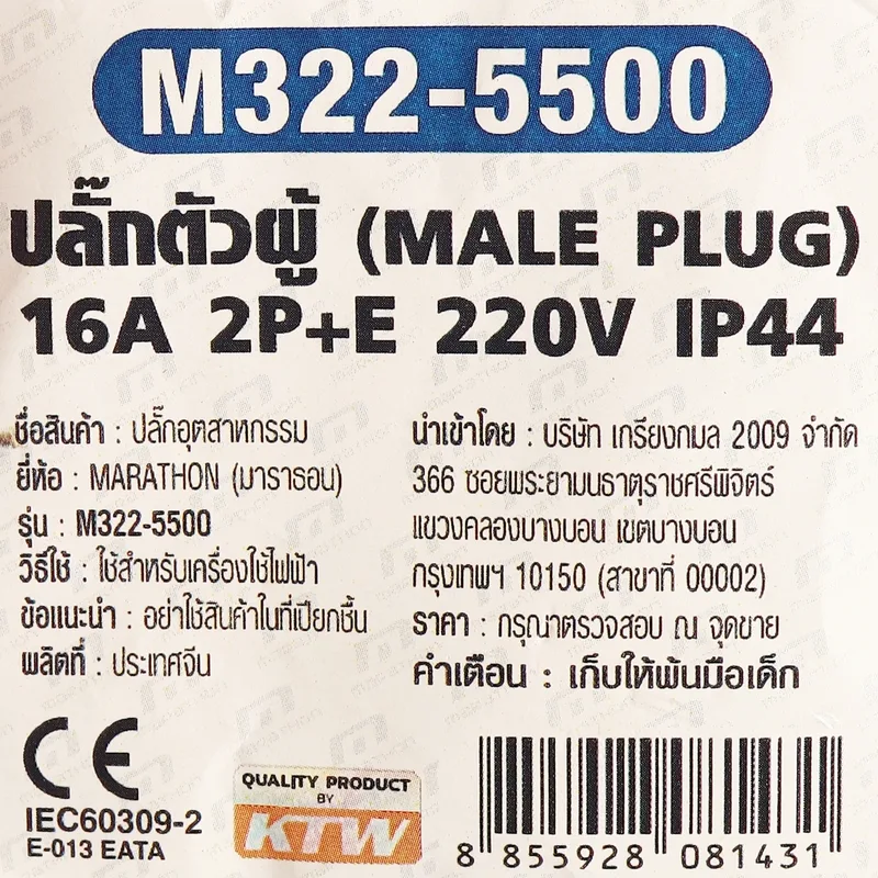 MARATHON เพาเวอร์ปลั๊กตัวผู้ 16 แอมป์