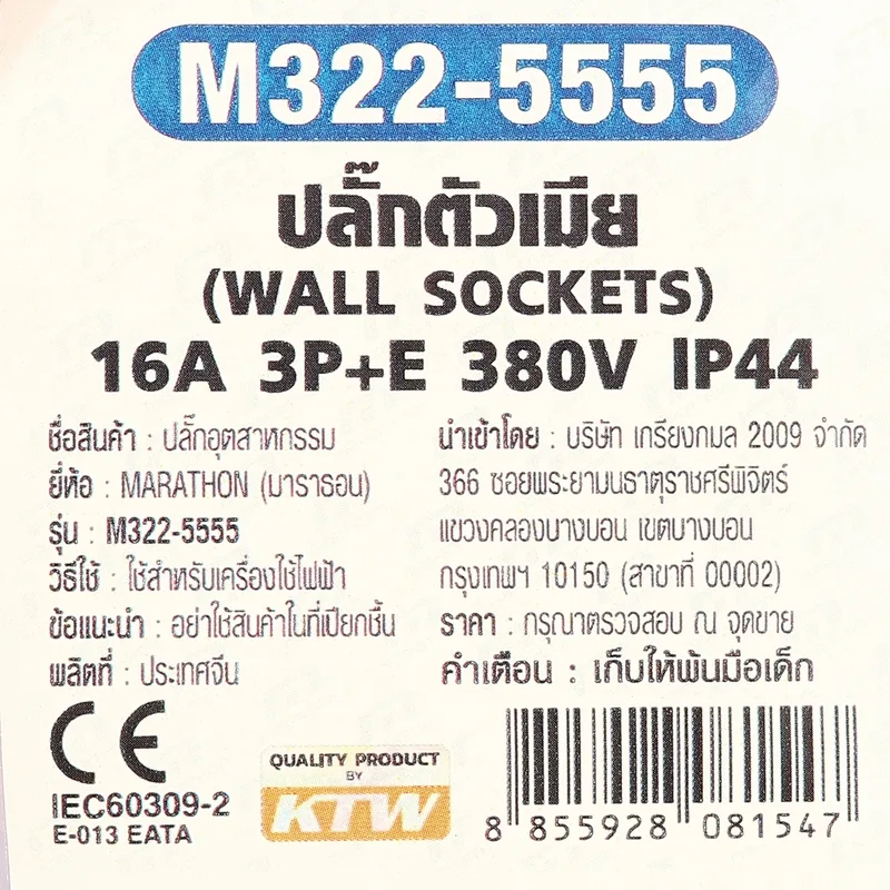 MARATHON IP44 ปลั๊กตัวเมียติดผนัง 16A3P+N+E 380V
