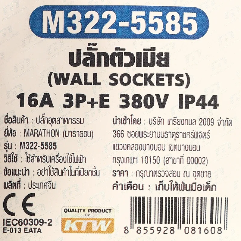 MARATHON เพาเวอร์ปลั๊ก ตัวเมีย ติดผนัง ฝังเฉียง 16 แอมป์