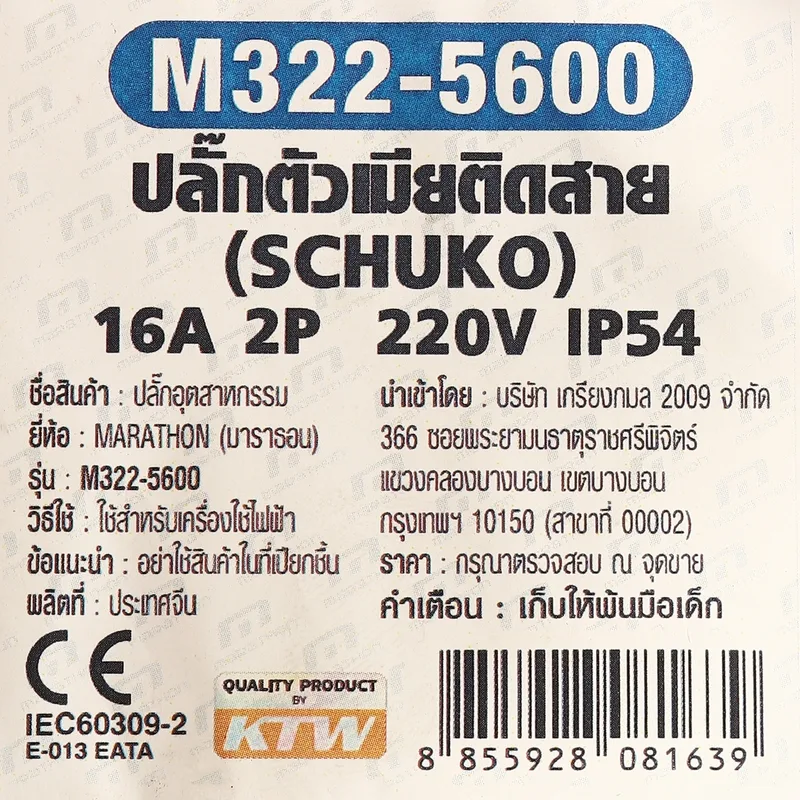 MARATHON ปลั๊กตัวเมีย ติดสาย 16 แอมป์