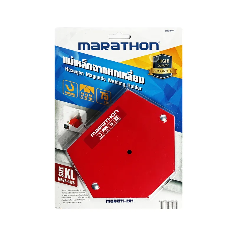MARATHON แม่เหล็กจับฉากหกเหลี่ยม 5 นิ้ว ไซส์ XL รับน้ำหนักได้ 35 กก. สามารถทำมุมได้ 30 , 45 , 60 , 75 , 90 , 135 องศา ทำด้วยโลหะ ใช้สำหรับงานเชื่อมโลหะเมื่อต้องการเข้ามุมฉากต่างๆ (มาราธอน)