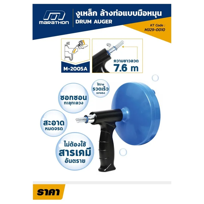 MARATHON M2005A งูเหล็ก ล้างท่อแบบมือหมุน 7.6 ม