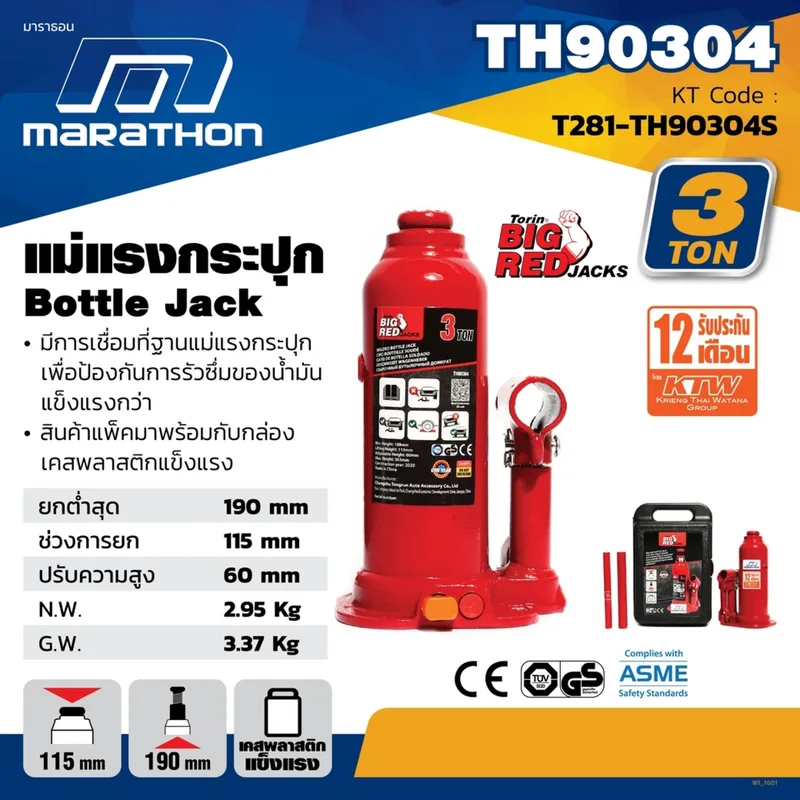 MARATHON TH90304S แม่แรงกระปุก 3 TON
