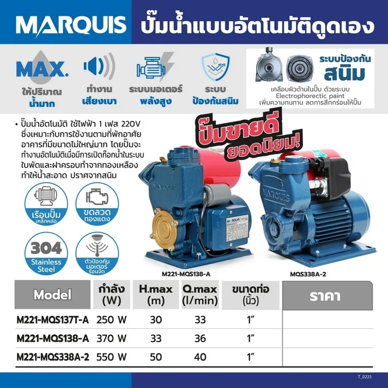 MARQUIS ปั๊มน้ำอัตโนมัติ รุ่น MQS137T