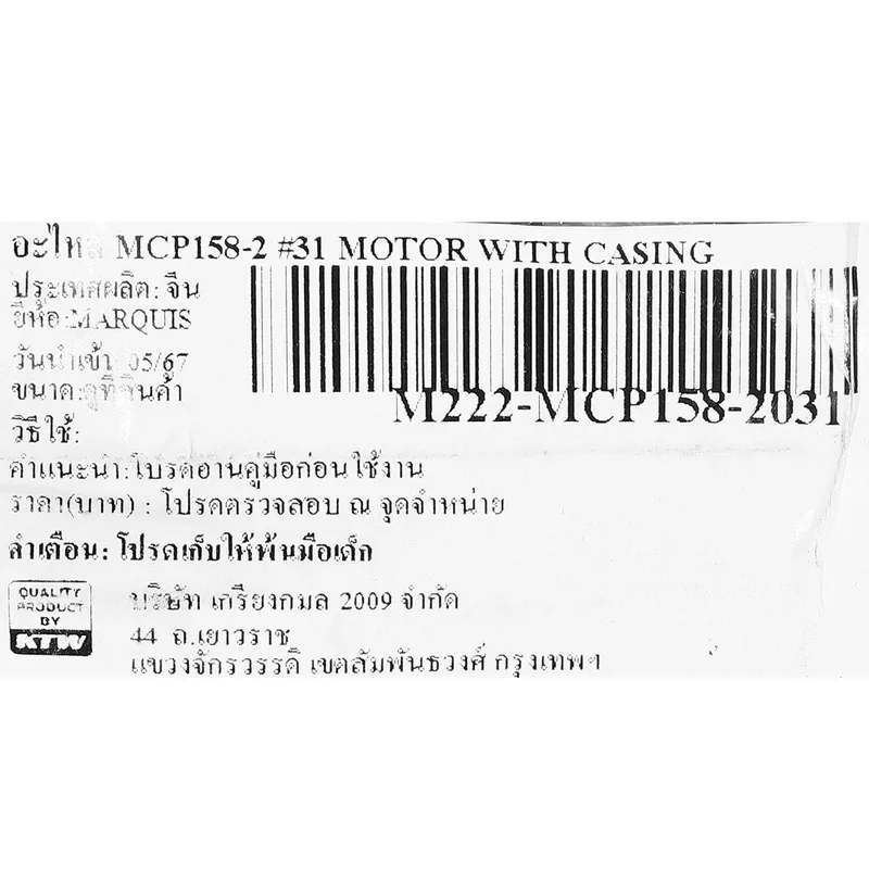 MARQUIS อะไหล่ปั๊มน้ำ รุ่น MCP158 #31 MOTOR WITH CASING