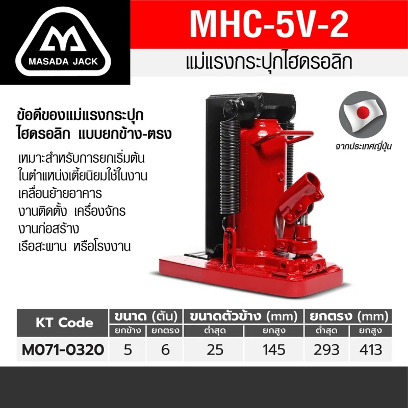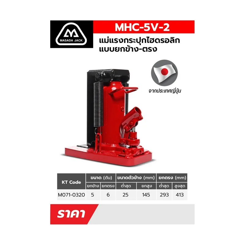 MASADA รุ่น MHC-5V-2 แม่แรงกระปุกยกข้าง ขนาด 5 ตัน พร้อม SAFETY VALVE