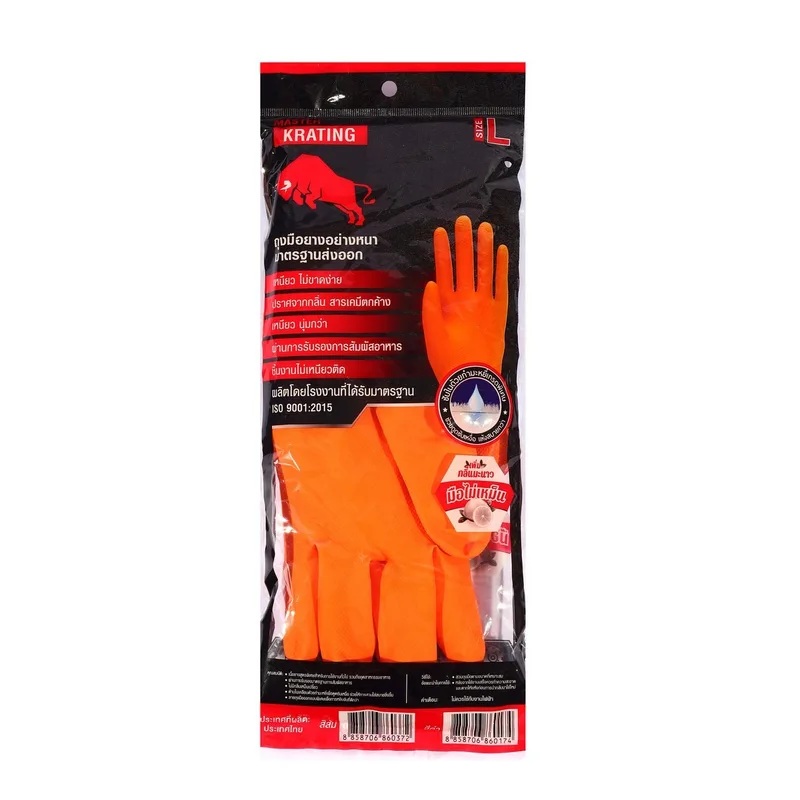 KRATING ถุงมือยางธรรมชาติ สีส้ม ใหญ่ L
