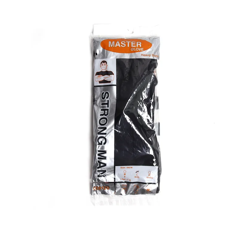 STRONGMAN ถุงมือยางธรรมชาติ ดำ 14″ไซส์ L