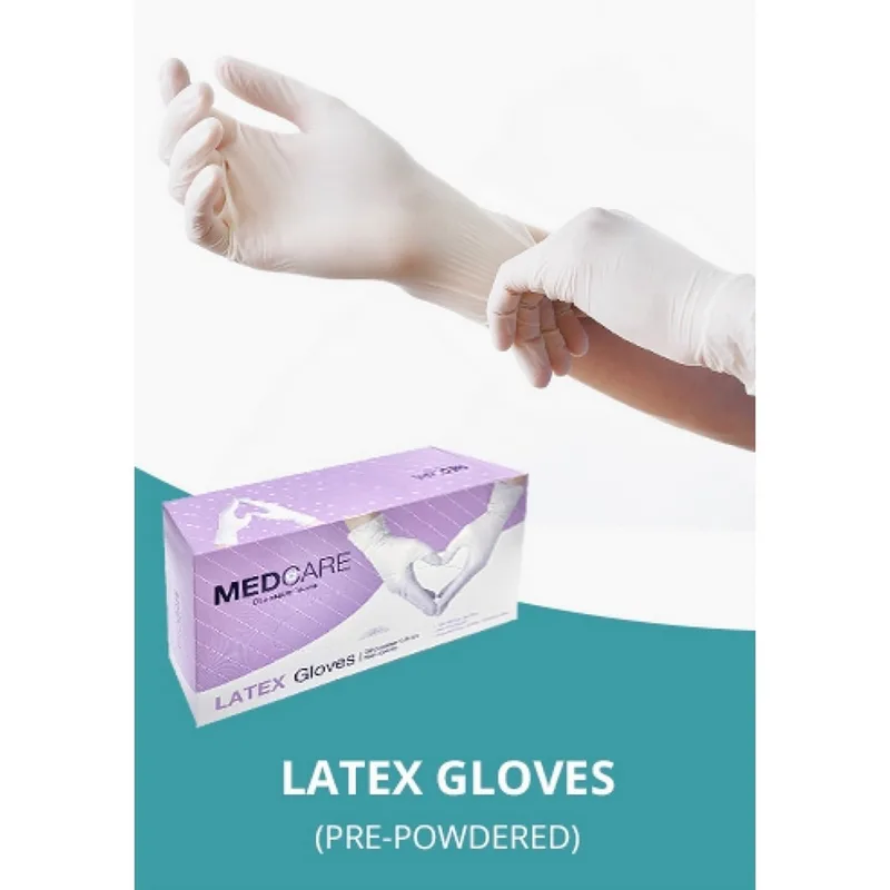 ถุงมือยางธรรมชาติลาเท็กซ์ ไซส์ M มีแป้ง MEDCARE