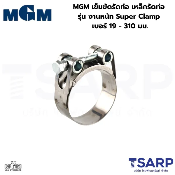 MGM เข็มขัดรัดท่อ เหล็กรัดท่อ รุ่นงานหนัก Super Clamp เบอร์ 17- 310 มม.