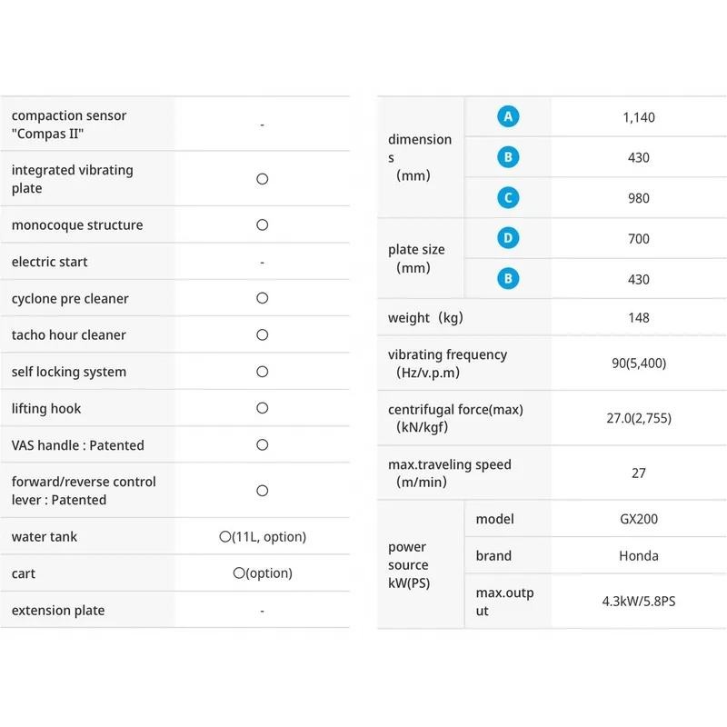 MVH-158GH เครื่องตบดินเดินหน้า-ถอยหลัง (เบนซิน) น้ำหนัก: 148 กก.