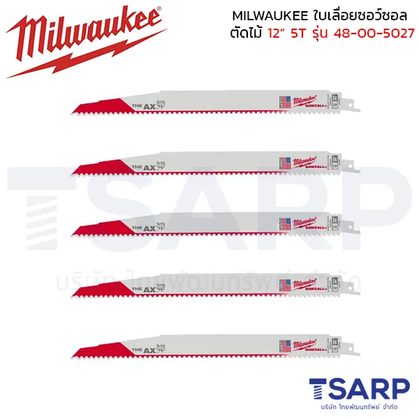 MILWAUKEE ใบเลื่อยซอว์ซอลตัดไม้ 12″ AX 5 TPI (5 ใบ) รุ่น 48-00-5027