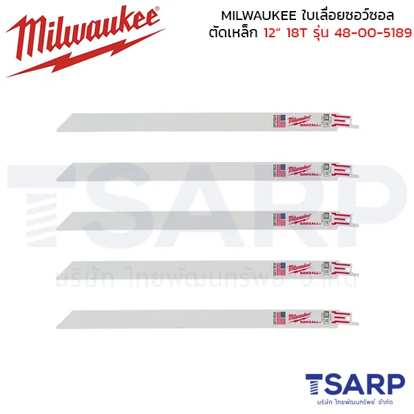 MILWAUKEE ใบเลื่อยซอว์ซอลตัดเหล็ก 12″ Thin Kerf 18 TPI (5ใบ) รุ่น 48-00-5189