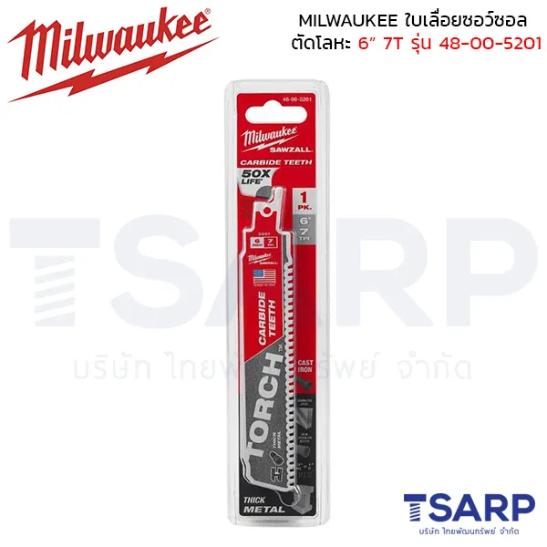 MILWAUKEE ใบเลื่อยซอว์ซอลตัดโลหะ 6″ ฟันคาร์ไบด์ 8 TPI (1 ใบ) รุ่น 48-00-5201