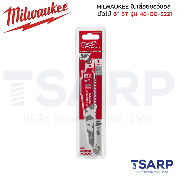 MILWAUKEE ใบเลื่อยซอว์ซอลตัดไม้ 6″ AX ฟันคาร์ไบด์ 5 TPI (1 ใบ) รุ่น 48-00-5221