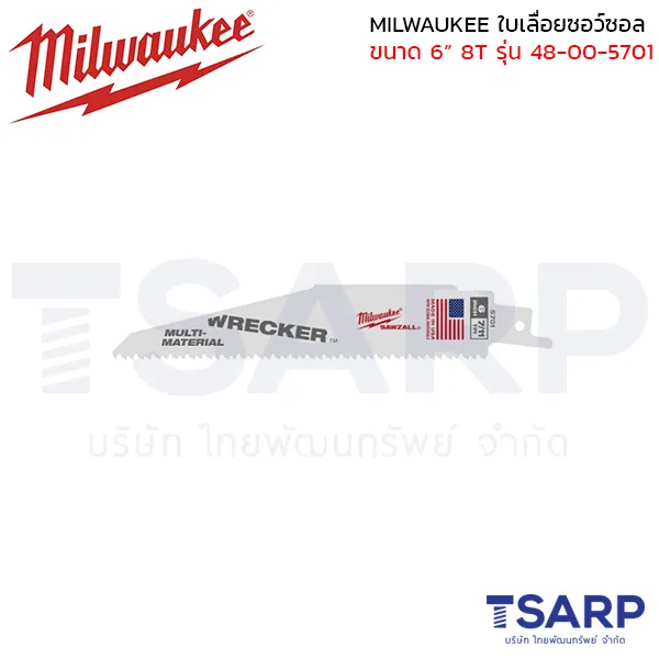 MILWAUKEE ใบเลื่อยซอว์ซอลตัดอเนกประสงค์ 6″ WRECKER 8 TPI (5 ใบ) รุ่น 48-00-5701