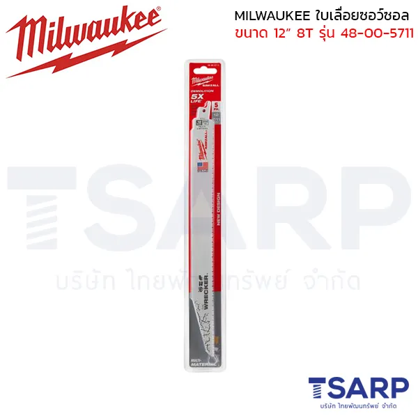 MILWAUKEE ใบเลื่อยซอว์ซอลตัดอเนกประสงค์ 12″ WRECKER 8 TPI (5 ใบ) รุ่น 48-00-5711
