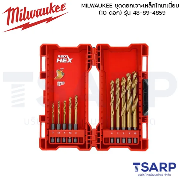 MILWAUKEE ชุดดอกเจาะเหล็กไทเทเนี่ยม Red Hex HSS-G Titanium (10 ดอก) รุ่น 48-89-4859