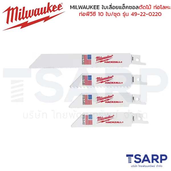 MILWAUKEE ชุดใบเลื่อยแฮ็คซอลตัดไม้ ท่อโลหะบาง ท่อพีวีซี (10 ใบ) รุ่น 49-22-0220