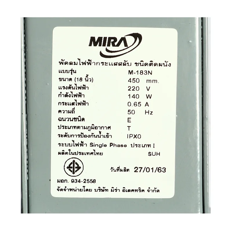 MIRA M-183N | พัดลมอุตสาหกรรมติดผนัง 18 นิ้ว (Industrial Wall Fan)