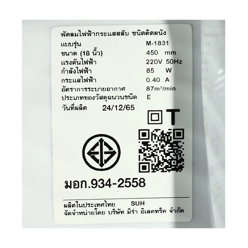 MIRA M-1831 | พัดลมติดผนัง 18 นิ้ว – ระบบ 1 สาย (Wall Fan)