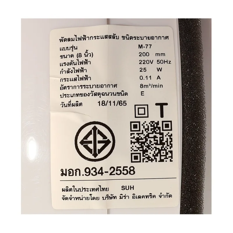 - มาตรฐาน: ผ่านการรับรองมาตรฐาน มอก.934-2558