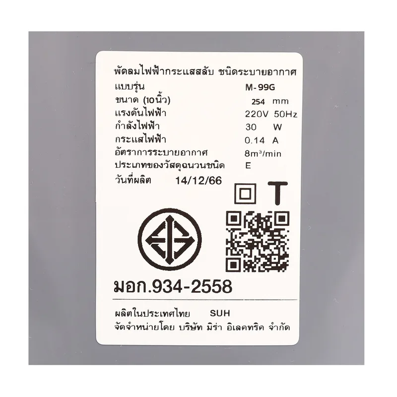 MIRA พัดลมดูดอากาศ 10นิ้ว ติดผนัง+หน้ากาก รุ่น M99G