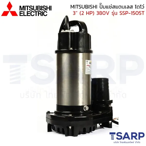 MITSUBISHI ปั๊มแช่สแตนเลส ปั้มจุ่ม ไดโว่ 3″(2 HP) 380V ไม่มีลูกลอย รุ่น SSP-1505T