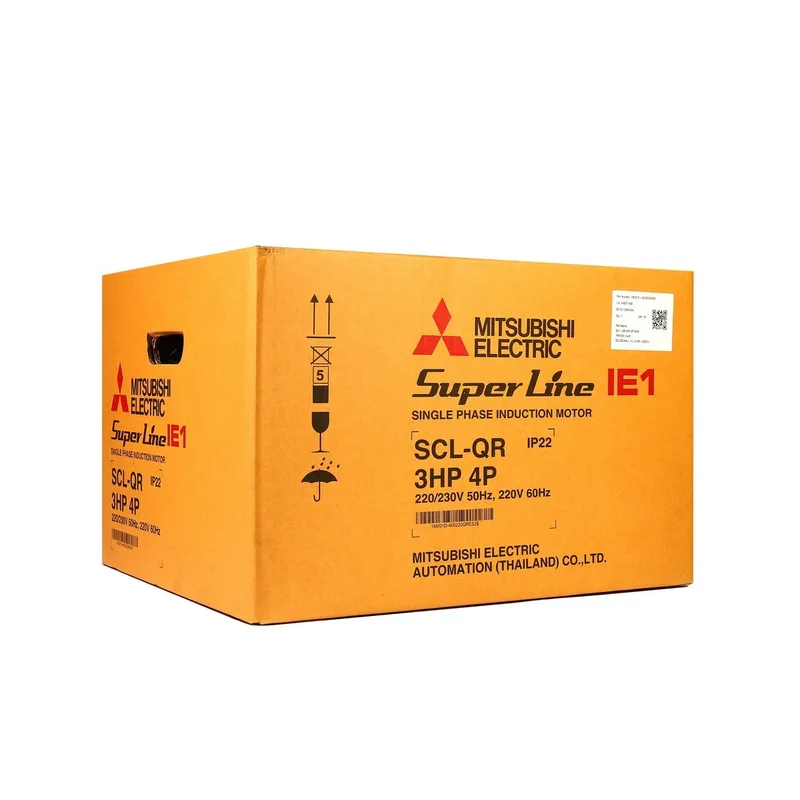 มอเตอร์ MITSUBISHI รุ่น SCL-QR กำลัง 3 แรงม้า (2.2 กิโลวัตต์) 1 เฟส 220 โวลต์ 4 โพล 2 สาย IP22 ความเร็วรอบ 1450 RPM (รอบต่อนาที)
