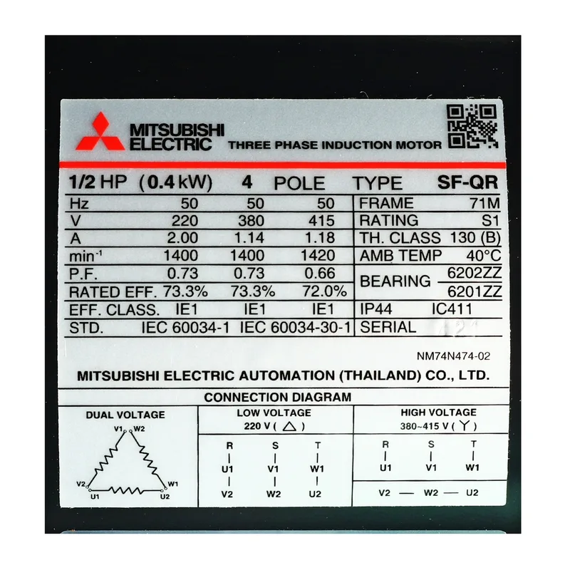 มอเตอร์มิตซูบิชิ รุ่น ซุปเปอร์ไลน์ คิว ซี่รี่ย์ (SF-QR Series) ชนิด