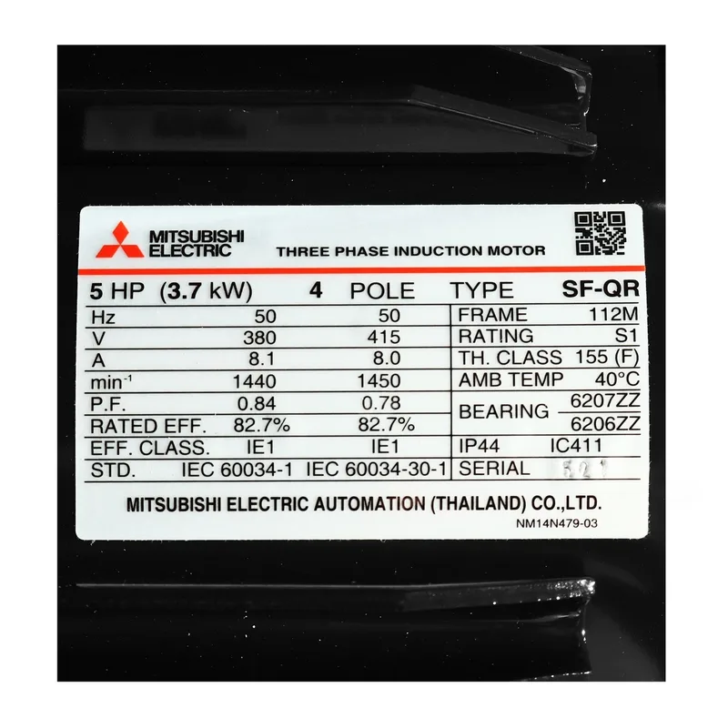 MITSUBISHI SF-QR มอเตอร์ 5 HP IP-44 380/415V 4P