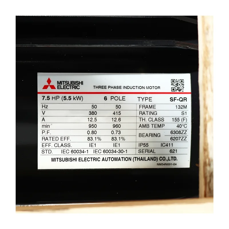 MITSUBISHI มอเตอร์ รุ่น SF-QR กำลัง 7.5 แรงม้า (5.5 กิโลวัตต์) ชนิดหุ้มมิด 3 เฟส 380/415 โวลต์ 6 โพล 3 สาย IP55 รอบช้า 950 รอบ/นาที (มิตซูบิชิ)