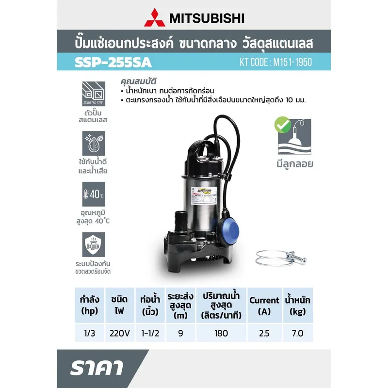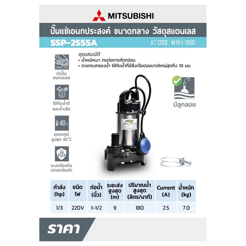 MITSUBISHI SSP-255SA(.15)ปั๊มแช่สแตนเลสลูกลอย1-1/2″