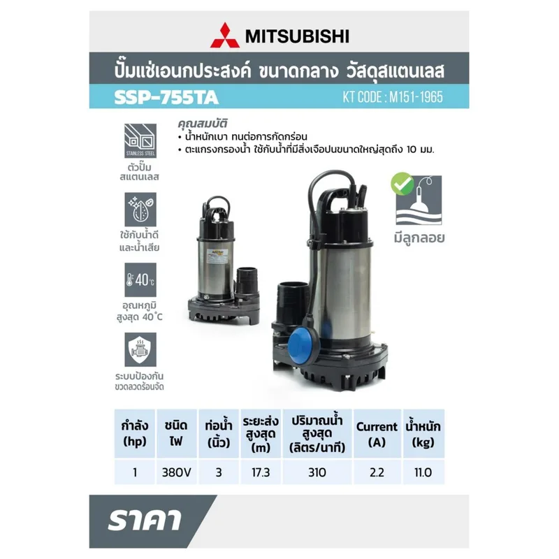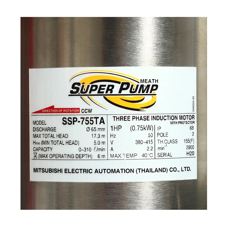 ปั๊มจุ่มดูดน้ำสแตนเลส มิตซูบิชิ (MITSUBISHI) รุ่น SSP-755TA