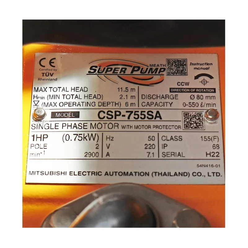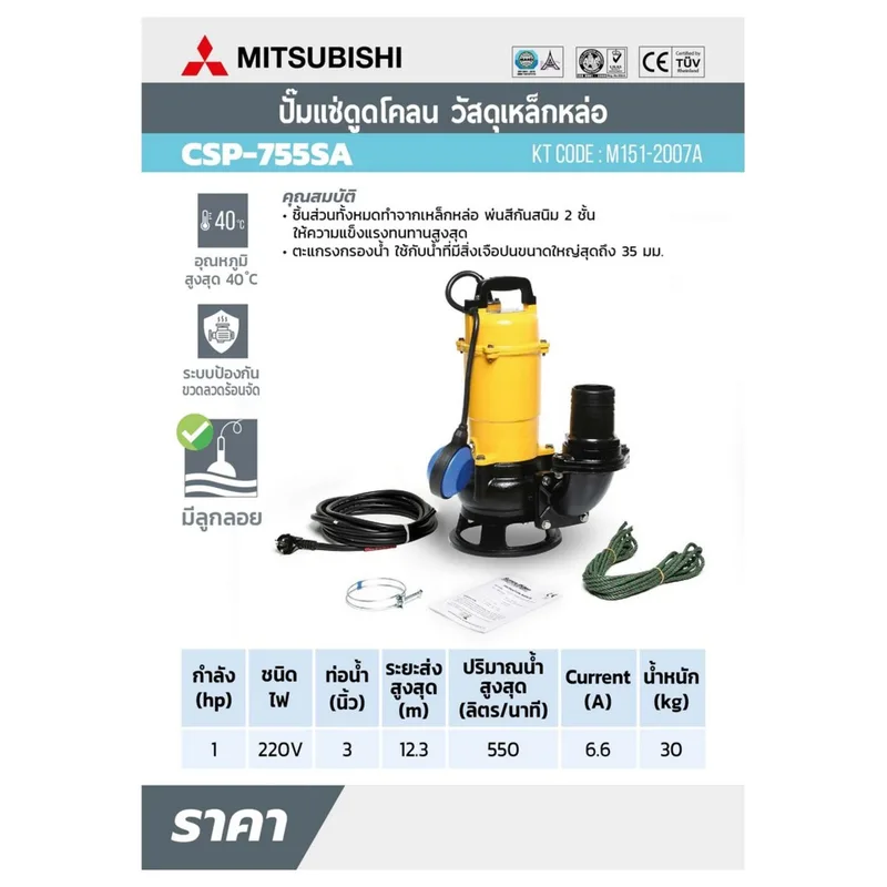 MITSUBISHI CSP-755SA ปั๊มแช่ดูดโคลน ท่อ 3″(1HP)1เฟส