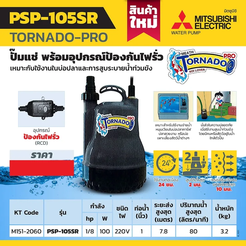 MITSUBISHI PSP-105SR ปั๊มแช่ TORNADO กันไฟรั่ว 1″