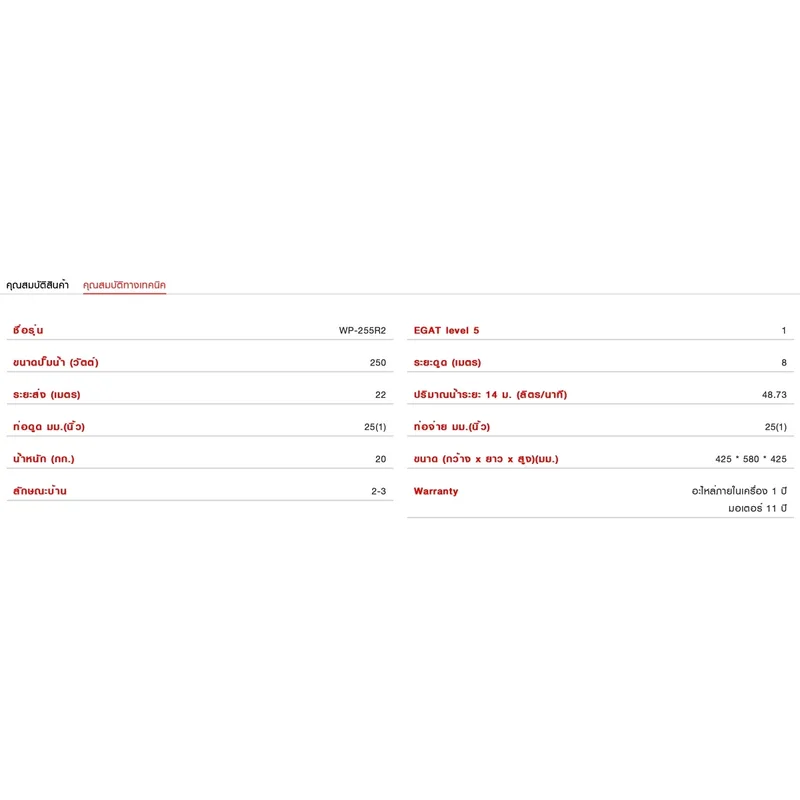 ปั๊มน้ำอัตโนมัติ MITSUBISHI รุ่น WP-255R2 (ถังกลม)