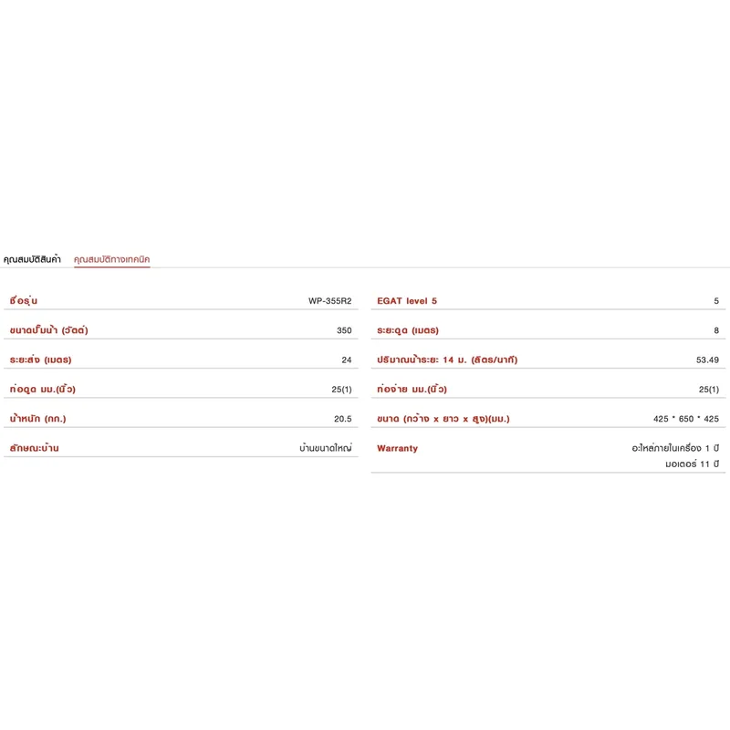 - ขนาดปั๊ม: 350 วัตต์