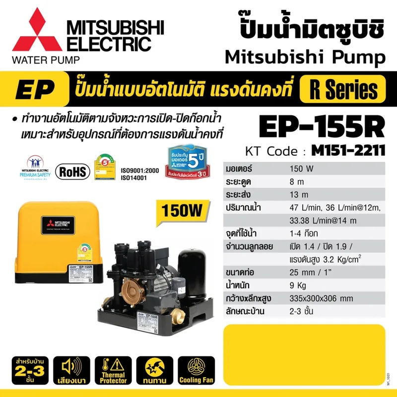 MITSUBISHI EP-155R ปั๊มน้ำอัตโนมัติ (ถังเหลี่ยม)