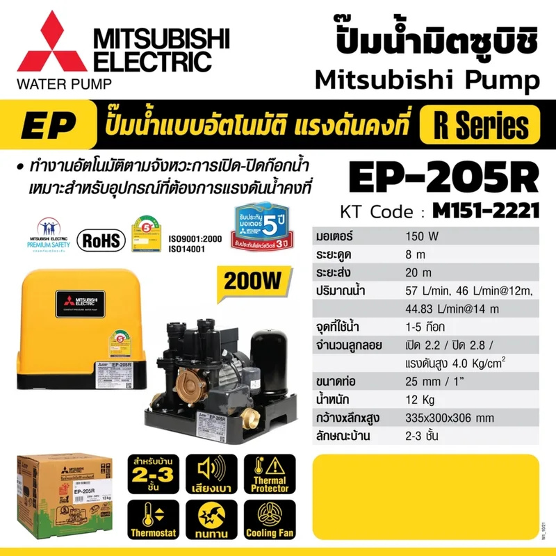 MITSUBISHI EP-205R ปั๊มน้ำอัตโนมัติ (ถังเหลี่ยม)