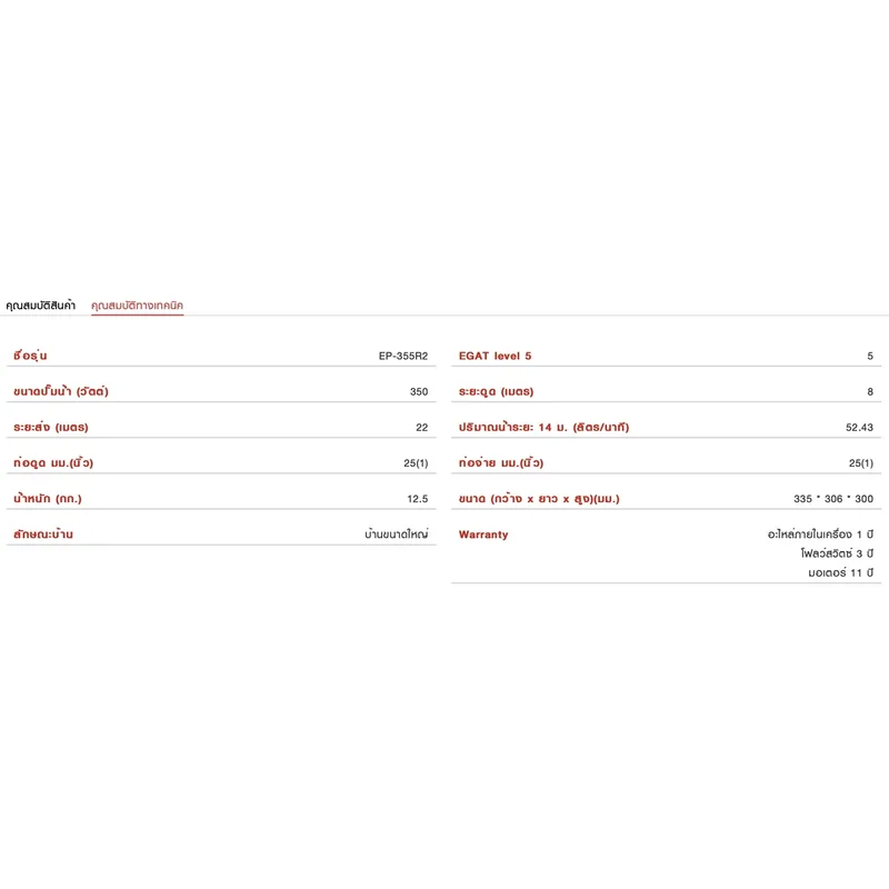 MITSUBISHI ปั๊มน้ำอัตโนมัติแรงดันคงที่ รุ่น EP-355R2 ขนาด 350 วัตต์ ระยะดูด 8 เมตร ระยะส่ง 22 เมตร ขนาดท่อ 25 มม. ปริมาณน้ำ 65 ลิตร/นาที (สูงสุด), 55 ลิตร/นาที (ระยะ 12 เมตร) สำหรับบ้านขนาดใหญ่ จุดที่ใช้น้ำ 1-8 จุด (มิตซูบิชิ)