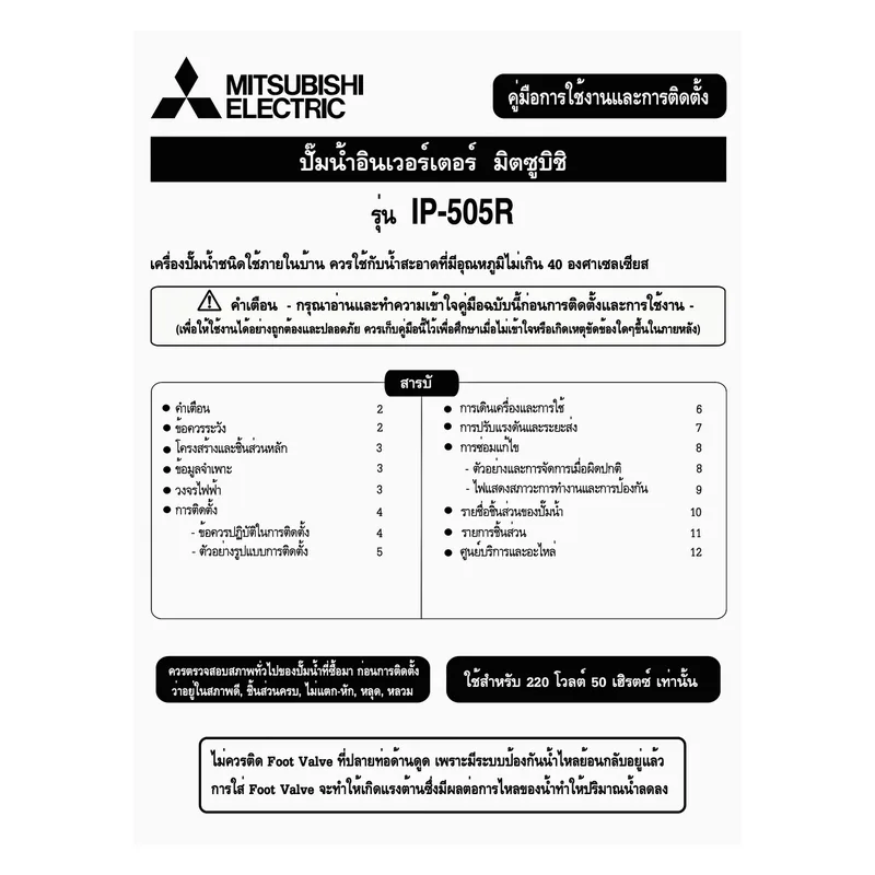 ปั๊มน้ำอินเวอร์เตอร์ MITSUBISHI รุ่น IP-505R2