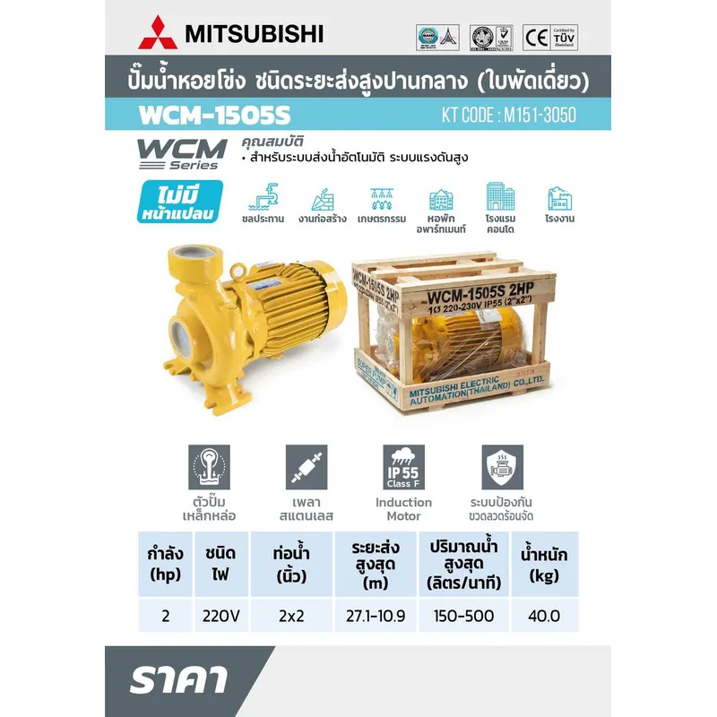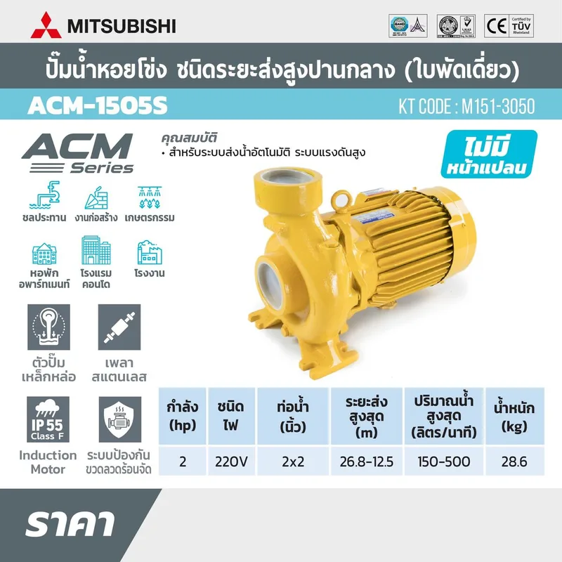ปั๊มน้ำหอยโข่ง ชนิดแรงดันสูงปานกลาง มิตซูบิชิ (MITSUBISHI) รุ่น ACM-1505S