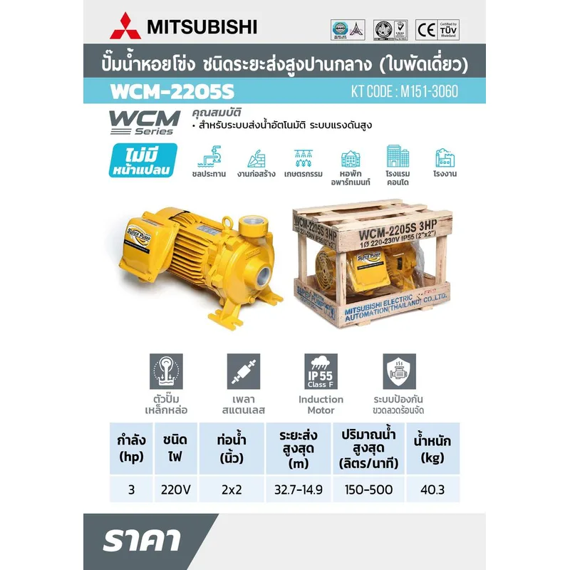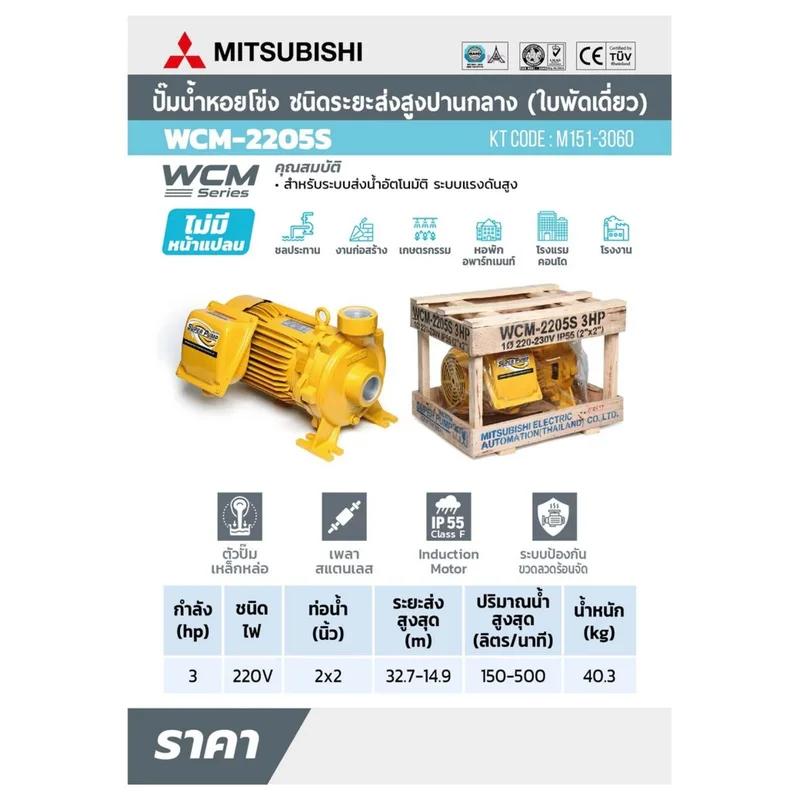 MITSUBISHI WCM-2205-S ปั๊มหอยโข่ง 3HP 1เฟส