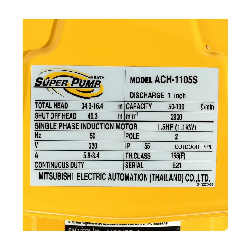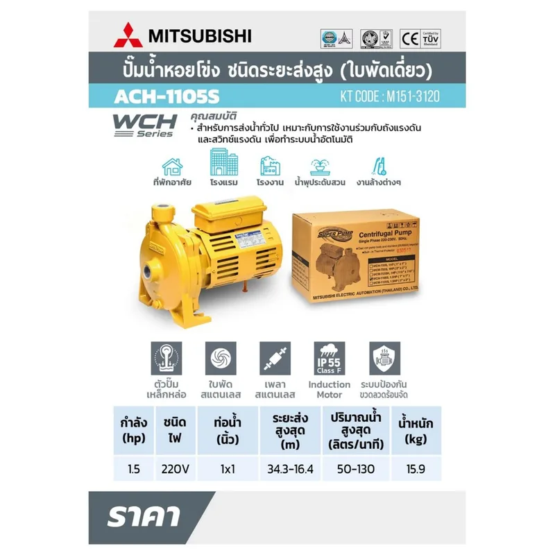 MITSUBISHI ACH-1105S(WCH)ปั๊มหอยโข่งส่งสูง1.5HP1เฟส