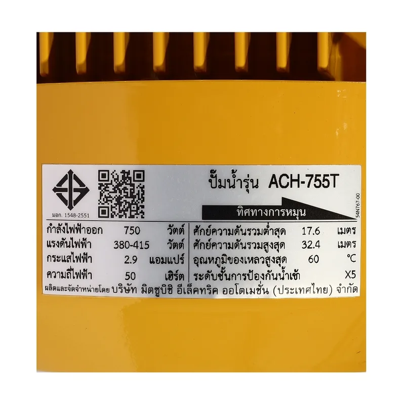 ปั๊มน้ำหอยโข่ง ชนิดแรงดันสูง มิตซูบิชิ (MITSUBISHI) รุ่น ACH-755T