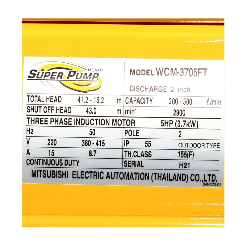 ปั๊มน้ำหอยโข่งมีหน้าแปลน ชนิดแรงดันสูงปานกลาง มิตซูบิชิ (MITSUBISHI) รุ่น WCM-3705FT