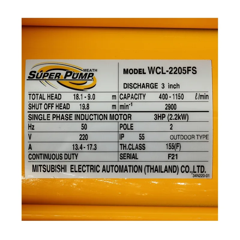 ปั๊มน้ำหอยโข่งมีหน้าแปลน ชนิดปริมาณน้ำมาก มิตซูบิชิ (MITSUBISHI) รุ่น WCL-2205FS