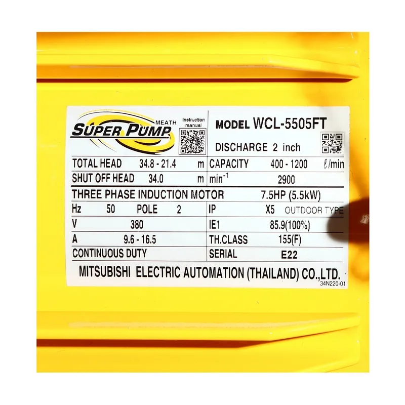 ปั๊มน้ำหอยโข่งมีหน้าแปลน มิตซูบิชิ (MITSUBISHI) รุ่น WCL-5505FT